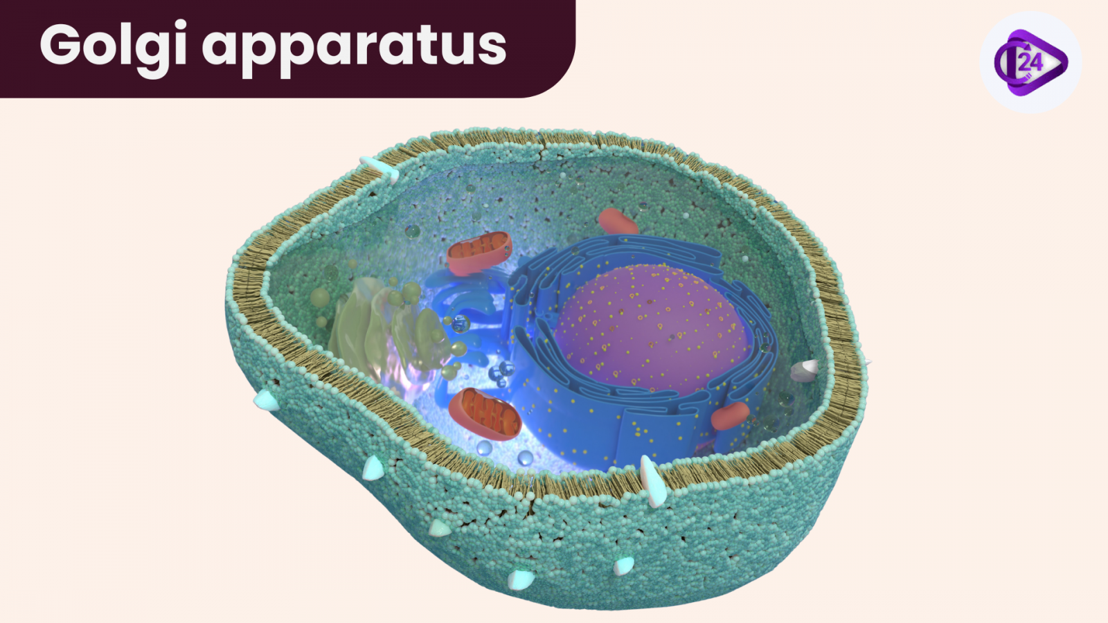 | Golgi Apparatus | Stack of flattened membrane sacs | Modifies, sorts, packages proteins and lipids into vesicles |