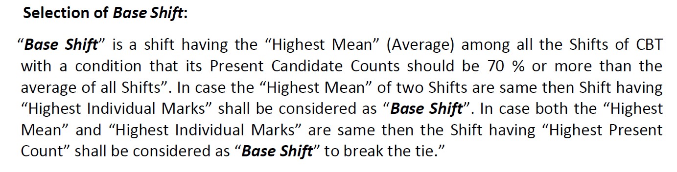 For example, if Shift 1 is harder than Shift 2, candidates in Shift 1 may score lower even though their performance is strong. Normalization increases their marks slightly to balance the evaluation.
