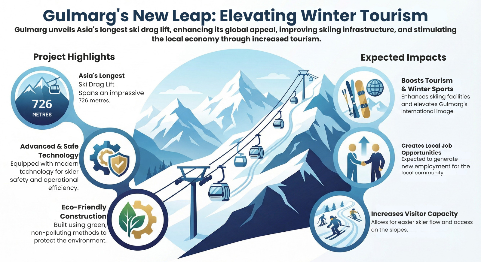 Explanation: The 726-metre ski drag lift in Gulmarg is now Asia’s longest, boosting winter tourism in Jammu & Kashmir.
