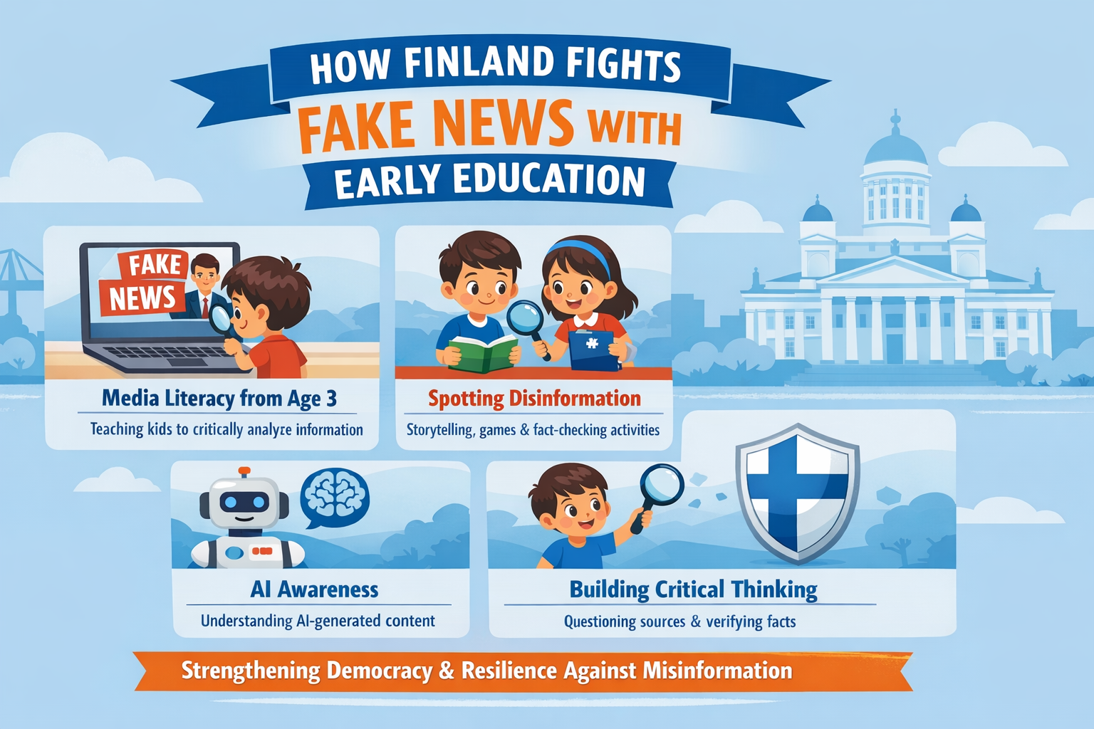 Finland has led by example in combating false news by integrating media literacy education into the national curriculum, beginning at early stages of education, such as preschool, at the age of three. The long-running project is designed to equip children with knowledge of how to be more critical of the media, how to recognise disinformation, and how information is built and communicated, thereby increasing their resistance to fake stories and propaganda. Artificial intelligence literacy is also taught by teachers now, as there is an increased presence of AI-generated material for misinformation dissemination. The strategy is part of the larger effort to reinforce democratic resilience and protect the information trust of the people of Finland.