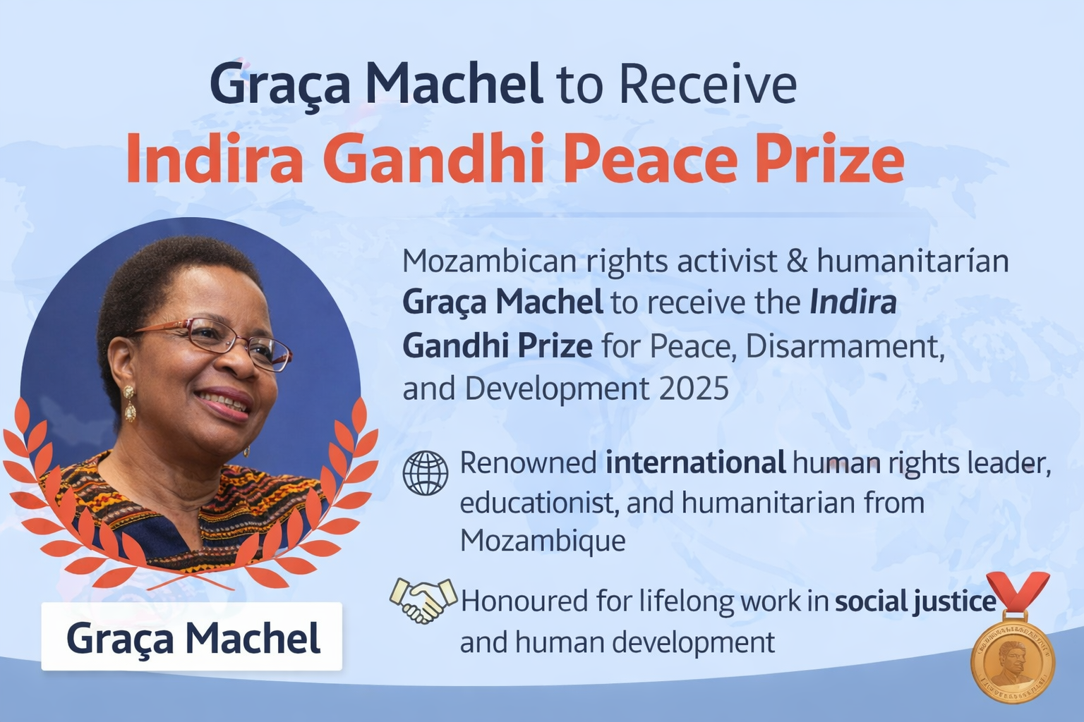 Mozambican rights activist Graça Machel has been chosen to get the Indira Gandhi Peace Prize on Peace, Disarmament, and Development 2025, the Indira Gandhi Memorial Trust said. She received the international jury led by former Indian National Security Advisor Shivshankar Menon in recognition of decades of groundbreaking efforts in the education, health, nutrition, economic empowerment, and humanitarian moves in demanding situations. Machel is a great African stateswoman and humanitarian who has devoted her life to alleviating the conditions of vulnerable groups and promoting human rights in the world. The award is given in honour of her lifelong dedication to making the world a more just and fair place to live.