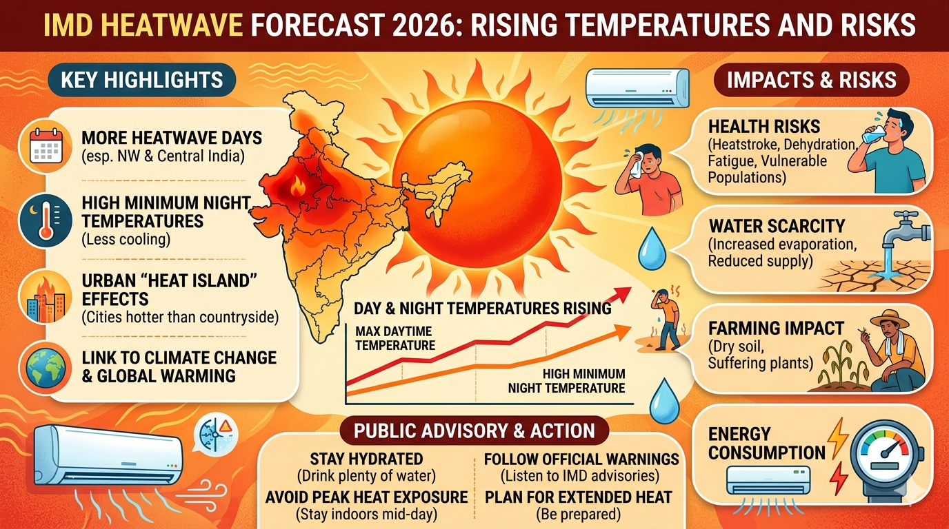 India Meteorological Department has sounded a warning bell for the forthcoming summer, calling for an increase in the number of heatwave days. The new forecast indicates not only a spike in daytime temperatures but also high minimum temperatures at night. This combination can pose health risks, place pressure on water supplies, and impact farming. The alert underscores the impact of climate change and the need for action. The public should plan to manage extended periods of extreme heat.