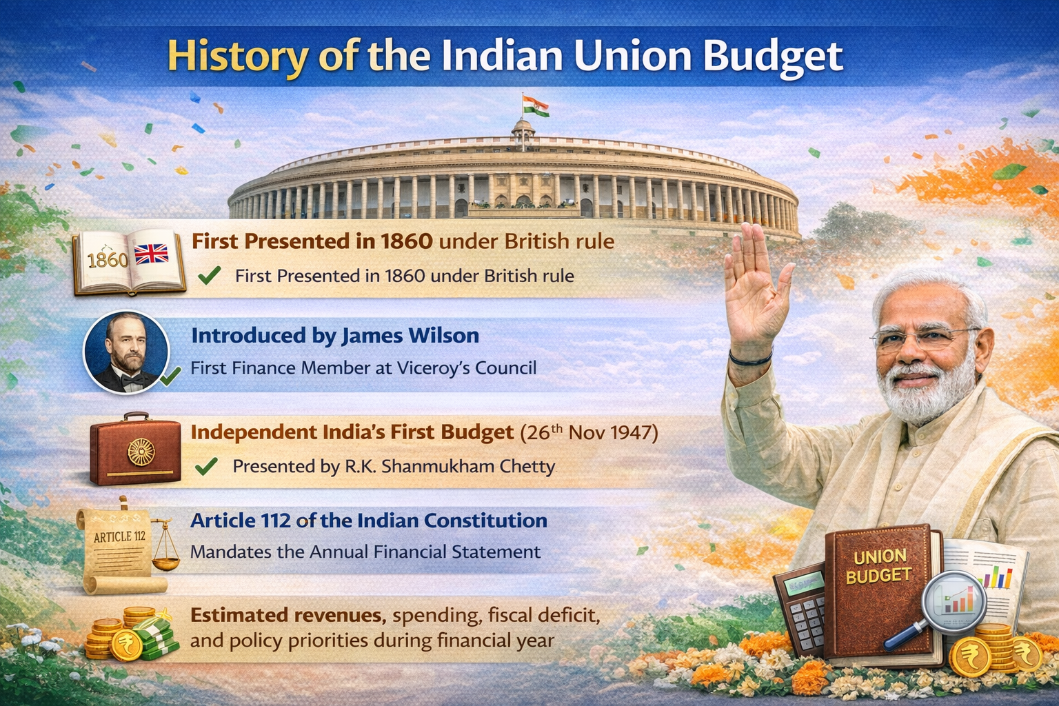 The Indian Union Budget was first presented in 1860 when it was ruled by the British.