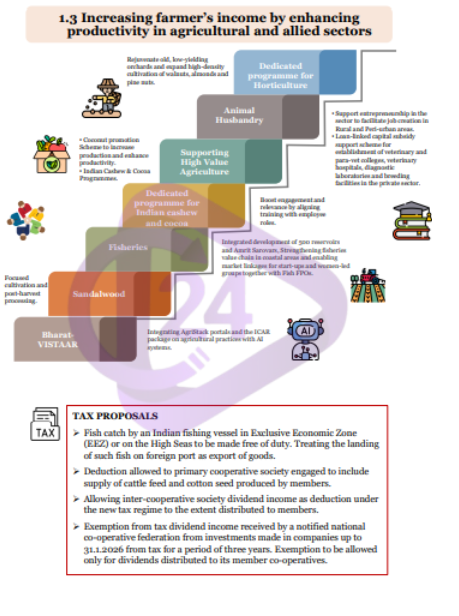 Tax proposals in support of fisheries and cooperative societies, such as challenge-free duties and exemptions on income tax.