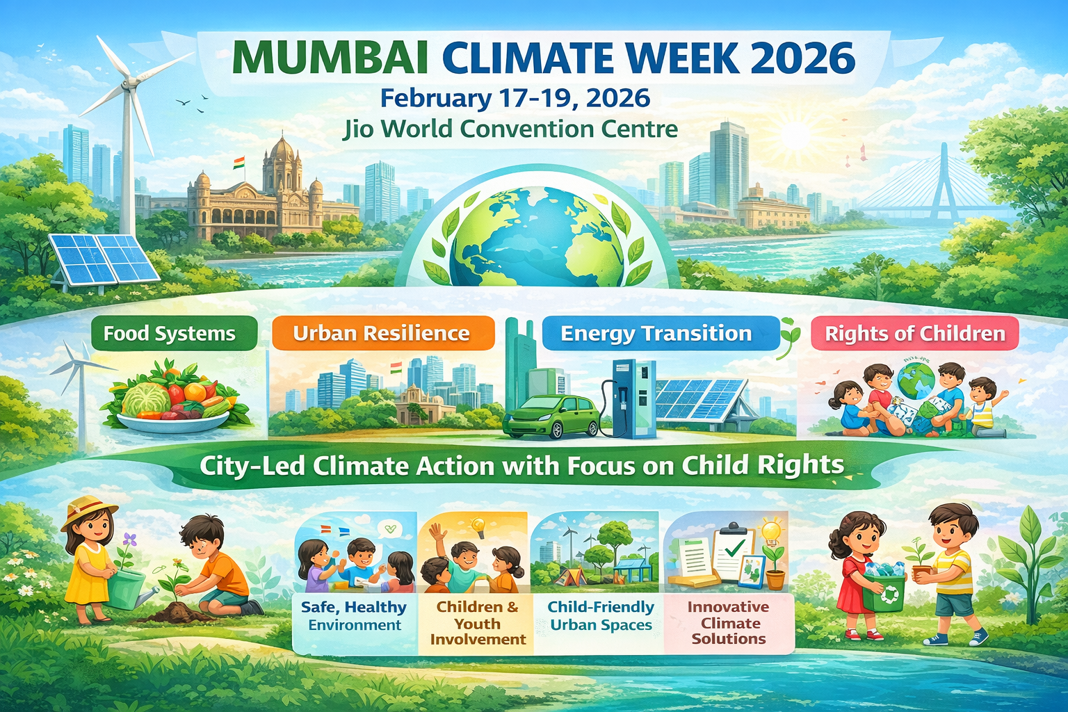 The first city-led program in the history of the country to exhibit climate action, Mumbai Climate Week 2026, will be hosted in the city, between 1719 February 2026, in the Jio World Convention Centre. The programme was conceived in collaboration with the Maharashtra government's Environment and Climate Change Department and in partnership with Project Mumbai. With the support of the Brihanmumbai Municipal Corporation, the global climate leaders, policymakers, citizens, innovators, and youth will come together and jointly develop solutions to the global climate issues with specific attention to food systems, urban resilience, and energy transition. It seeks to make Mumbai and India urban climate governance and action leaders in the global south.