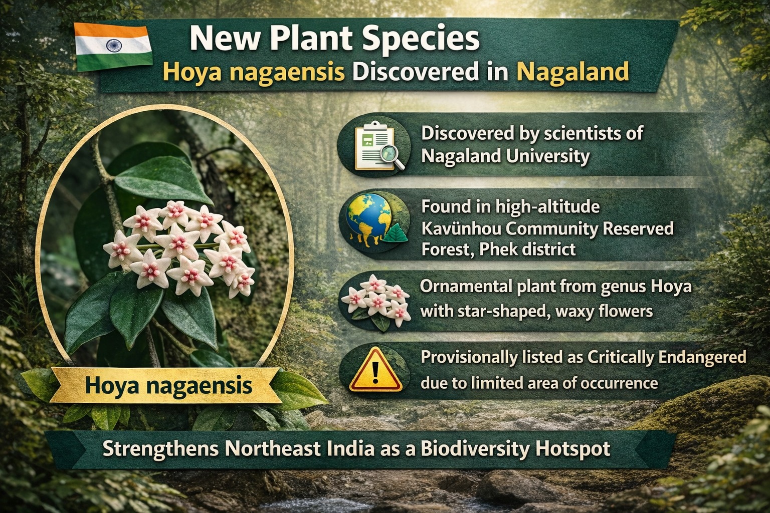 The finding of the new plant species Hoya nagaensis in Nagaland pinpoints the outstanding biodiversity of the location and the worth of forests that are somehow preserved by the community. Their rare morphological characteristics and restricted chemical distribution make it a critically endangered species, and conservation, scientific research and sustainable management are necessary to protect the rich endemic species in India.