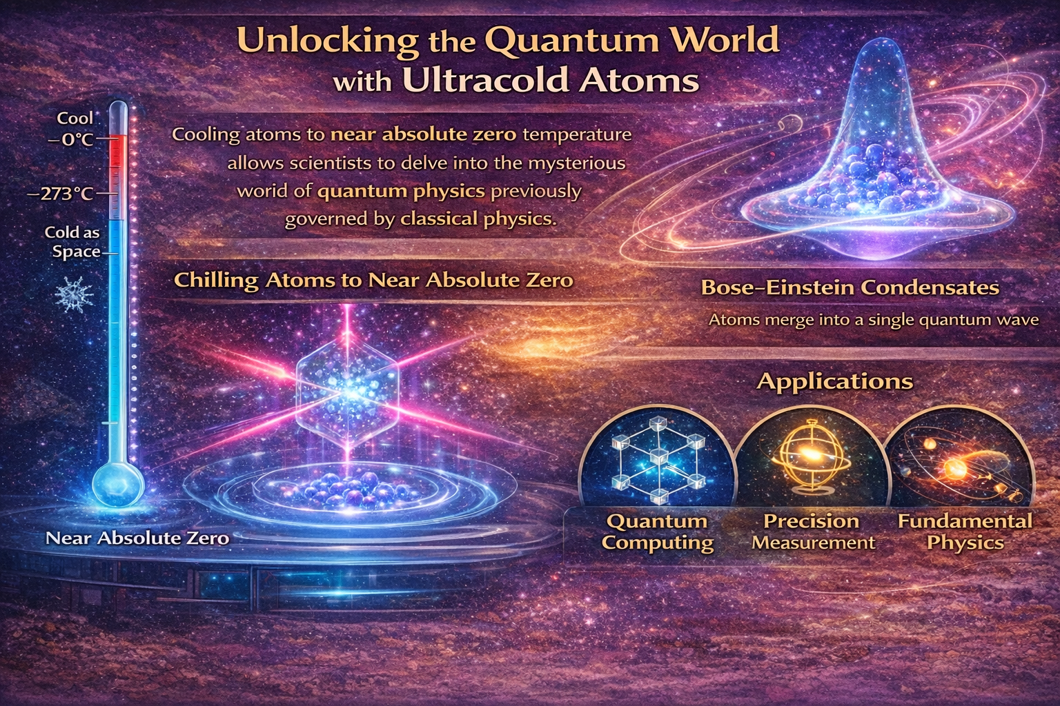 The ultracold atoms, which cool down to an almost fraction of the absolute zero temperature, provide an exclusive place of entry into the hidden world of quantum physics governed by classical physics. In extremely low temperatures, the atomic movement is practically frozen, and quantum effects prevail, and the atoms can act as waves instead of particles. With advanced methods including laser cooling and trapping, it is possible to explore exotic states of matter like Bose-Einstein condensates, wherein the atoms behave as one quantum system. Through these ultracold systems, the fundamental quantum physics phenomena can now be viewed and controlled directly, which is useful in quantum computing, precision measurement and the study of the universe at the most fundamental level.
