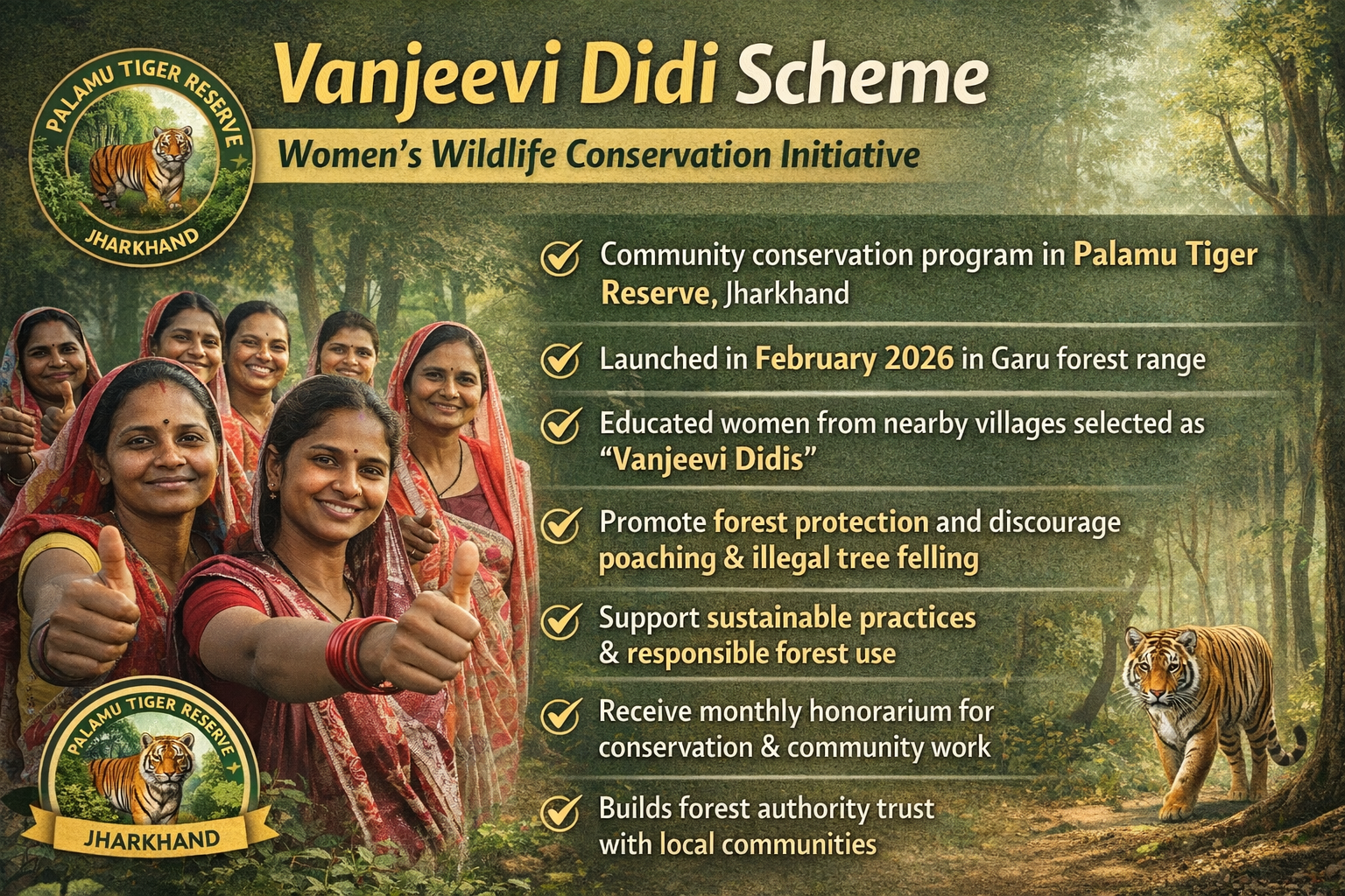 The Vanjeevi Didi Scheme is a community-based wildlife conservation initiative launched at the Palamu Tiger Reserve.