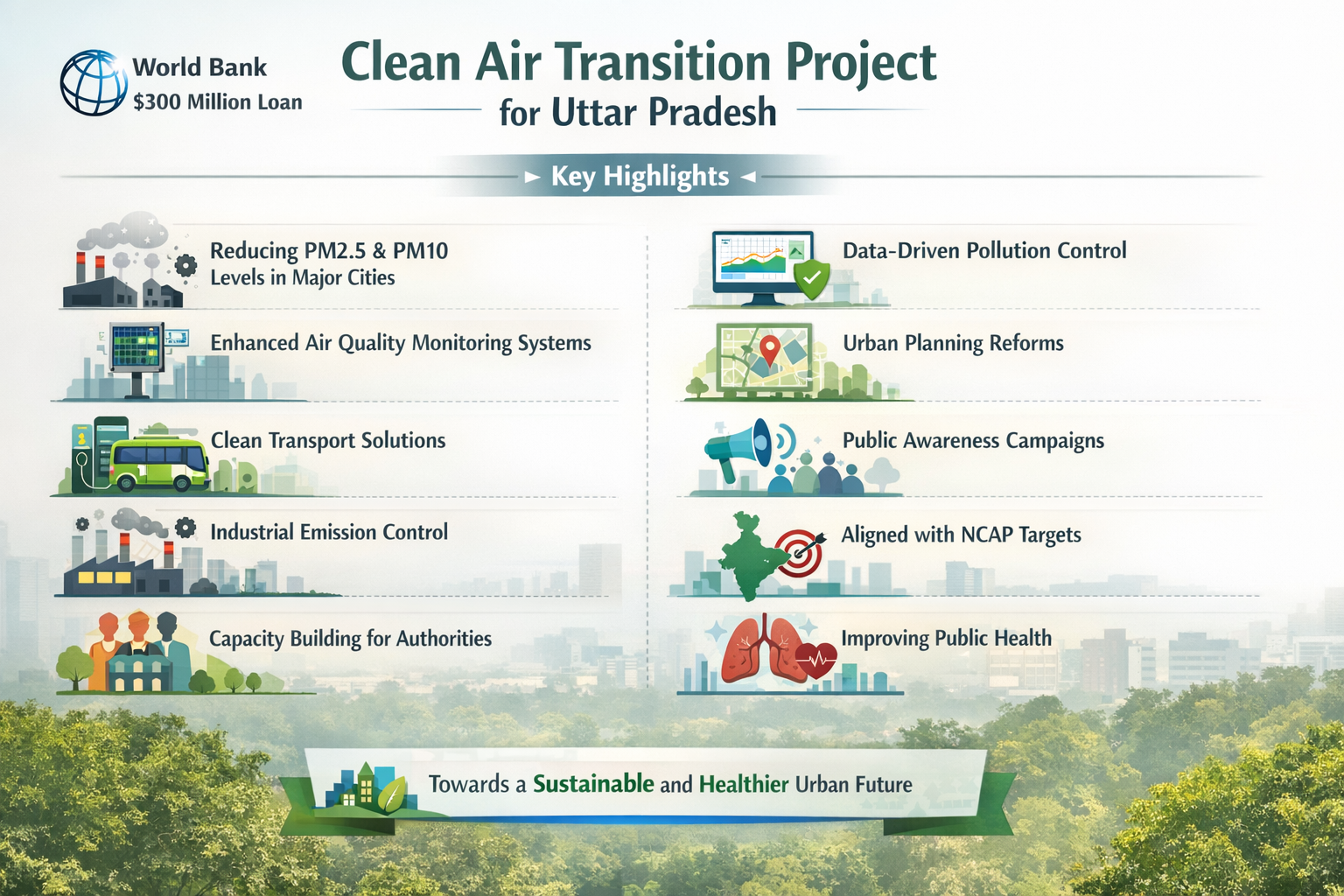 The World Bank support marks a significant step in Uttar Pradesh’s fight against air pollution. By strengthening governance, promoting clean technologies, and improving urban planning, the initiative can deliver long-term environmental and public health benefits. Effective implementation and continuous monitoring will be crucial to achieving cleaner, more sustainable air and to setting a model for other states.