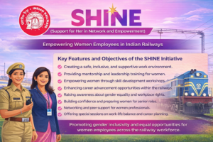 The SHINE initiative launched by Indian Railways marks an important step toward promoting gender equality and strengthening women’s participation in the workplace. By focusing on mentorship, leadership development, skill enhancement, and a supportive work environment, the programme aims to empower women employees across various railway departments. It also reflects the organization’s commitment to building an inclusive and progressive institutional culture. Through initiatives like SHINE, Indian Railways can enhance women’s representation in decision-making roles while fostering confidence, professional growth, and equal opportunities, ultimately contributing to a more diverse, productive, and resilient workforce in India’s public sector.