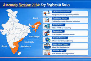 The Election Commission of India has begun the process for the Assembly Elections in several key regions including Assam, Kerala, Tamil Nadu, West Bengal, and the Union Territory of Puducherry. These elections are significant as they determine the formation of new state governments and shape regional political dynamics. The announcement of the election schedule marks the start of the democratic process, including candidate nominations, campaigning, and voting phases. Political parties and voters across these states are now preparing for the electoral process, which plays a crucial role in strengthening democratic governance in India.